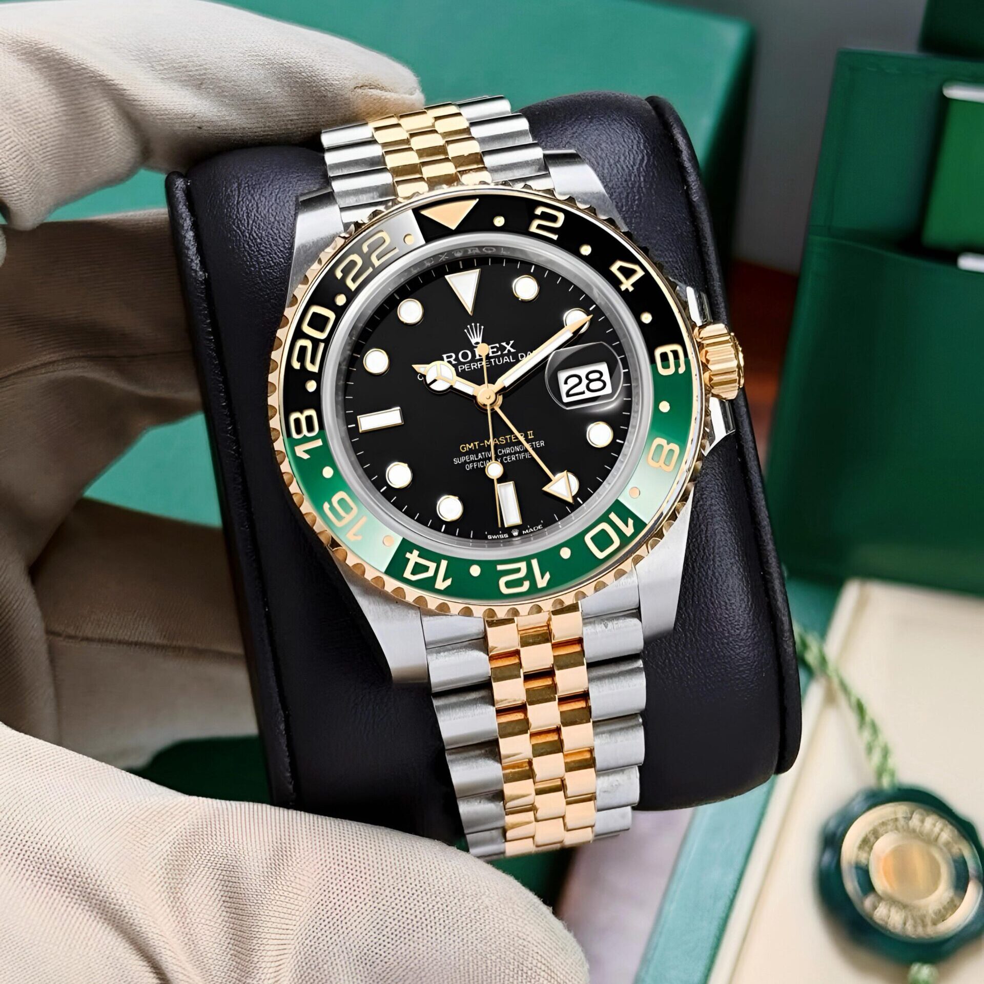 “A bold masterpiece in green and black — the Rolex GMT Sprite redefines dual-time elegance with iconic design and uncompromising precision.” 💚